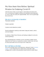 We Have been Here Before: Spiritual Wisdom for Enduring Covid-19