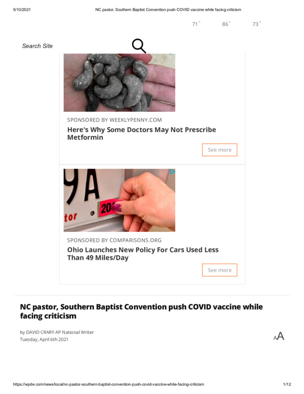 NC pastor, Southern Baptist Convention push COVID vaccine while facing criticism