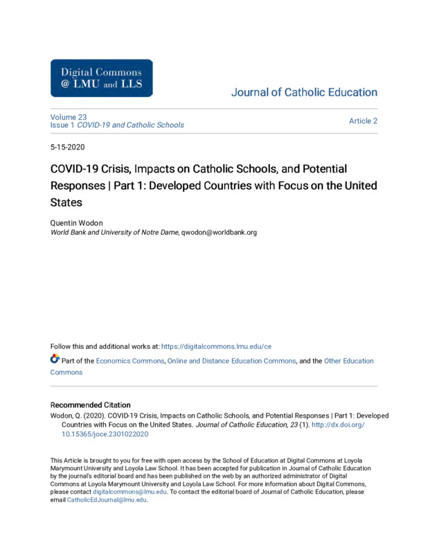 COVID-19 Crisis, COVID-19 Crisis, Impacts on Catholic Schools, and Potential Impacts on Catholic Schools, and Potential Responses | Part 1: Developed Countries with Focus on the United States