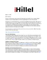 Much like the synagogues, Columbus' Jewish community organizations were compliant with secular and governmental guidance. Columbus' Jewish community organizations are greatly varied in their functions, stretching anywhere from the OSU Hillel to the JCC to the community Kollel. The general themes of the literature and data produced by these varied institutions includes using virtual platforms like zoom, explore ritual and worship changes, and focusing on community and unity.
